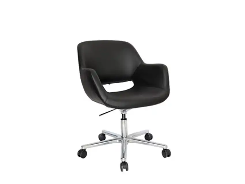 Base: estrella de 5 puntas en aluminio fundido y pulido con terminado en cromo, rodajas tipo dual y/o regatones.